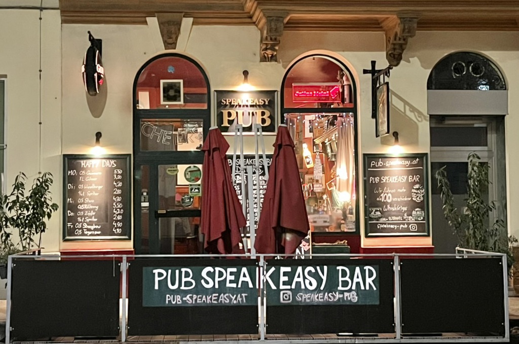 Gemütliche Atmosphäre, eine gut gefüllte Bar, die feine Speisekarte, ein gemütlicher Indoor-Bereich und der luftige Gastgarten laden zum Besuch im Pub Speakeasy ein